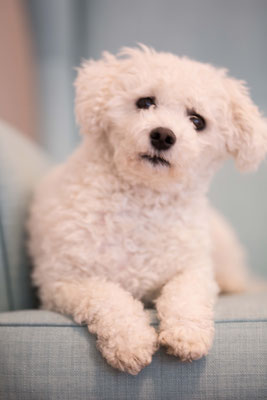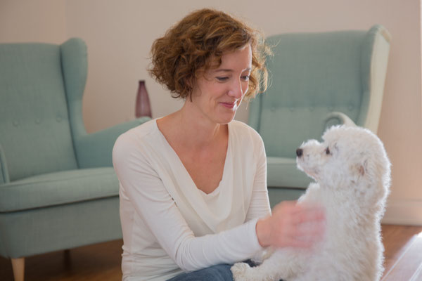 In der Regel begrüße ich insbesondere neue Klient:innen erst einmal allein. Immer mehr Klient:innen genießen es aber auch, Fine beim Coaching "dabei" zu haben. Dann ist sie gern mit im Raum, wahlweise im Körbchen oder auf Wunsch auch als Schoßhund... Sie ist eine kleine Schmusebacke und wenn sie darf, dann kuschelt sie gern.